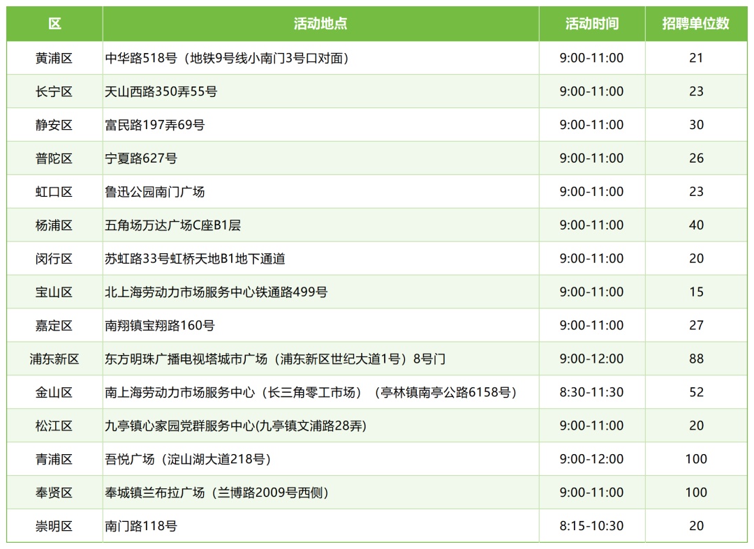 除设置在上海体育馆的主会场外,其余各区均设立分会场,活动信息如下:
