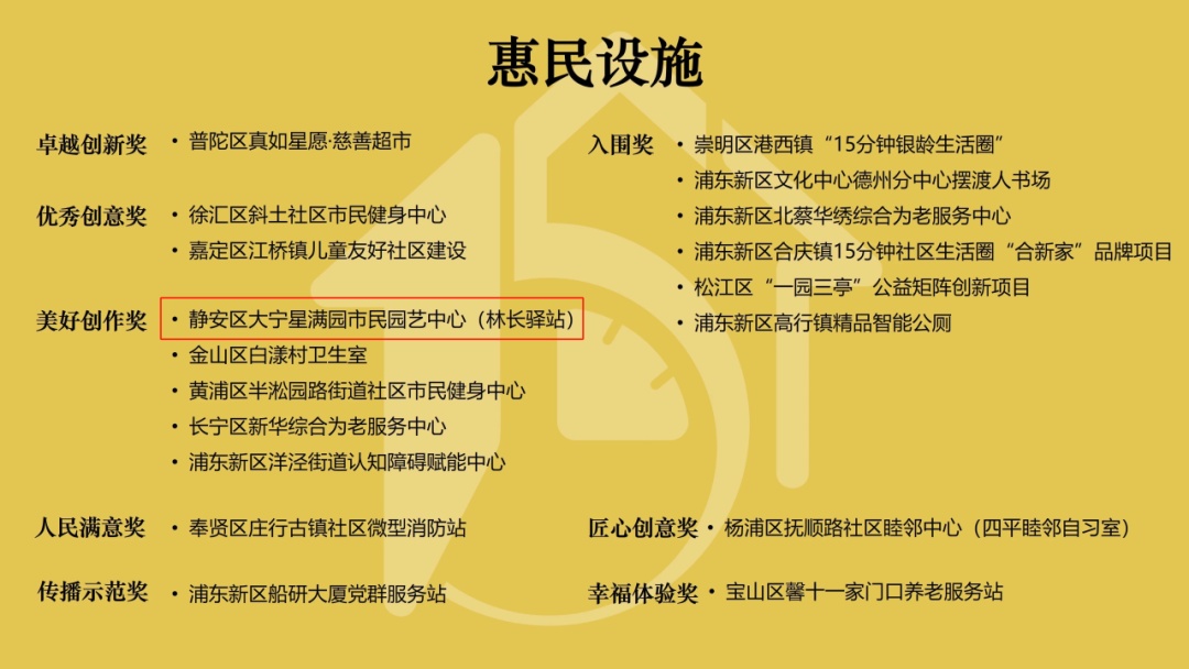 近日,由市规划资源局联合市城市规划学会、市城市规划行业协会共同组织开展的2025年上海“15分钟社区生活圈”优秀案例评选活动结果公布。静安区大宁星满园市民园艺中心(林长驿站)荣获“惠民设施”赛道“美好创作奖”。