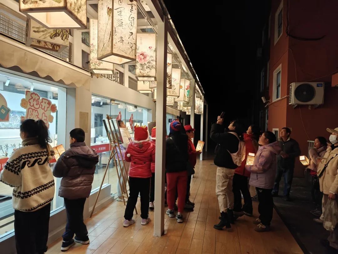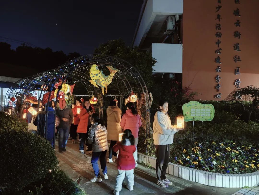 手工灯完成后,孩子们在家长的陪同下,手持自己精心制作的作品,漫步校园,欣赏各式各样的花灯。夜空下,点点星光与五彩斑斓的花灯交相辉映,构成了一幅温馨美好的画面。大家或仰头观赏环保与非遗完美结合的鱼灯,或在精美的纸艺灯前留影纪念,欢笑声与祝福声交织中,节日的氛围不断升腾。