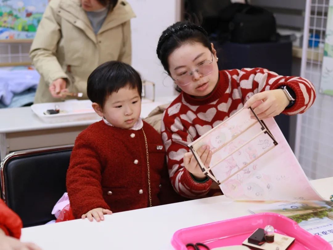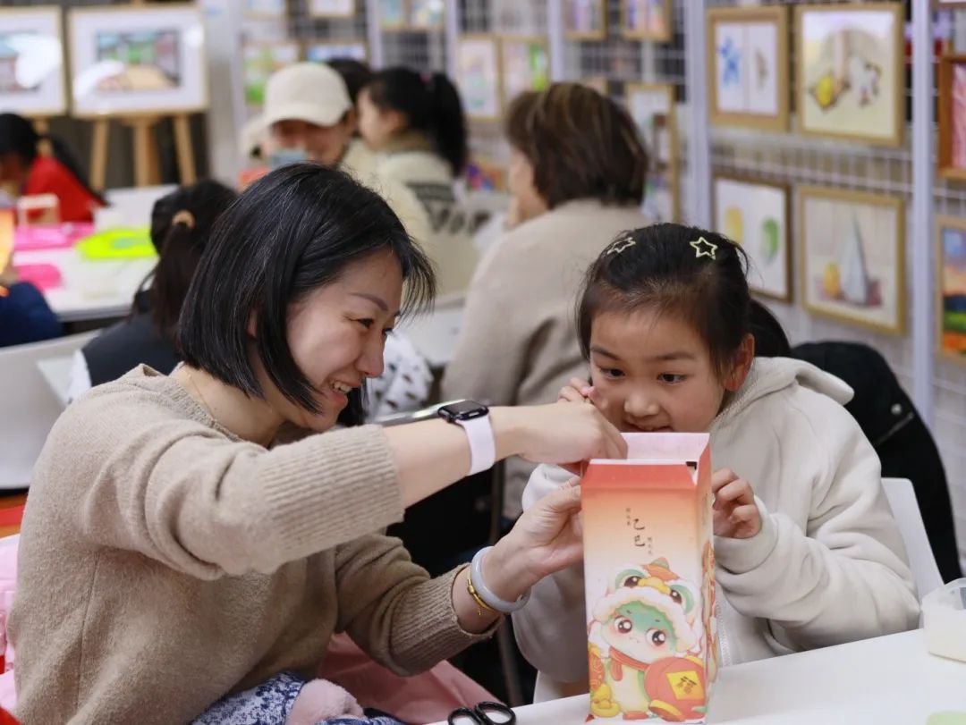 夜幕降临,凌云街道社区学校内灯火通明。身着喜庆服饰的亲子家庭欢聚一堂,在专业老师的指导下,用纸面、木棒、胶水等材料,认真拼接、黏合,制作着属于自己的元宵节礼物。其间,家长们不时举起手机,记录下孩子们专注制作的瞬间。