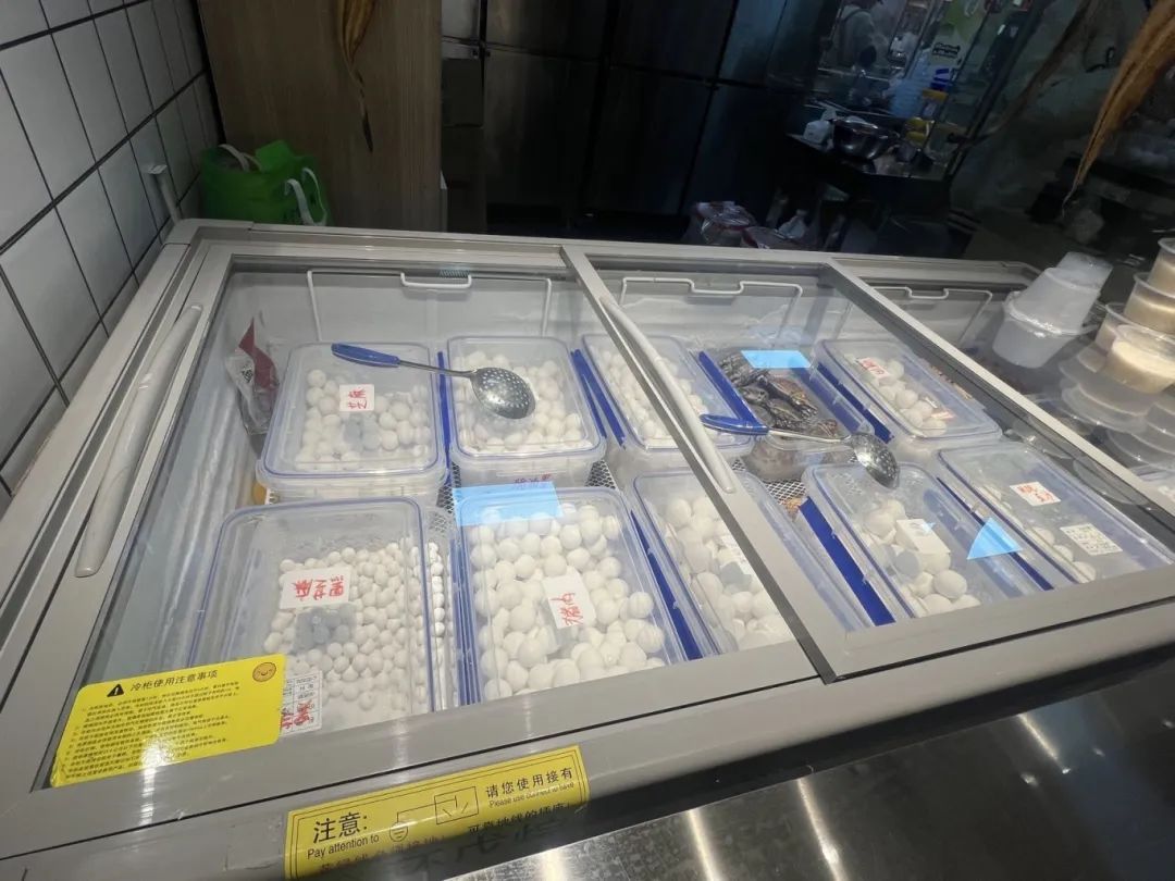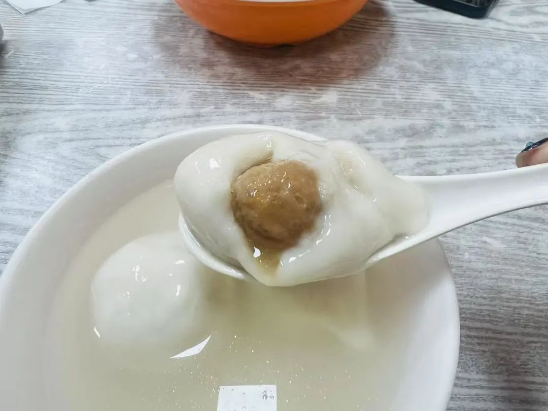 记者注意到,他们家的汤圆和馄饨一样个头很大,一个个都实墩墩的,胃口小的小伙伴基本上吃4个就差不多了。鲜肉汤圆尝一口肉汁四溢,鲜香可口。芝麻汤圆软糯不粘牙,轻咬一口,猪油黑芝麻馅心缓缓流出,香得不得了。