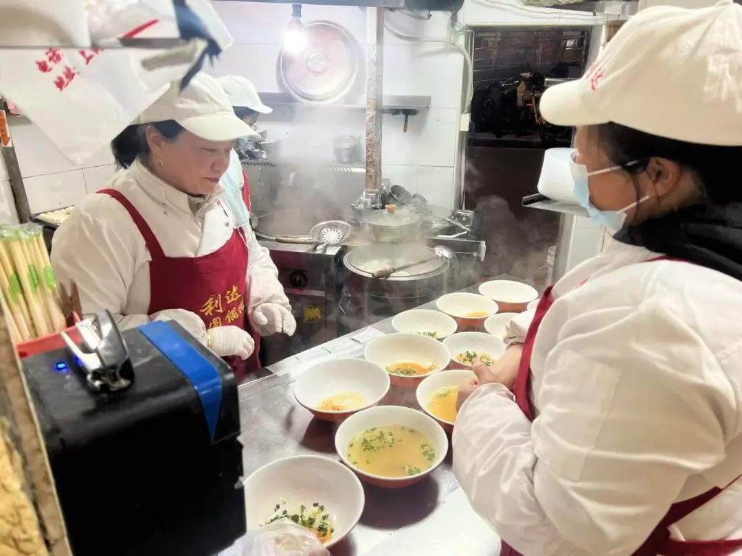 元宵节前,记者来到位于四川北路川公路上的利达汤圆馄饨店,不大的店面坐满了客人,排队点单的客人一波接一波,外卖订单的提示音也不断响起。