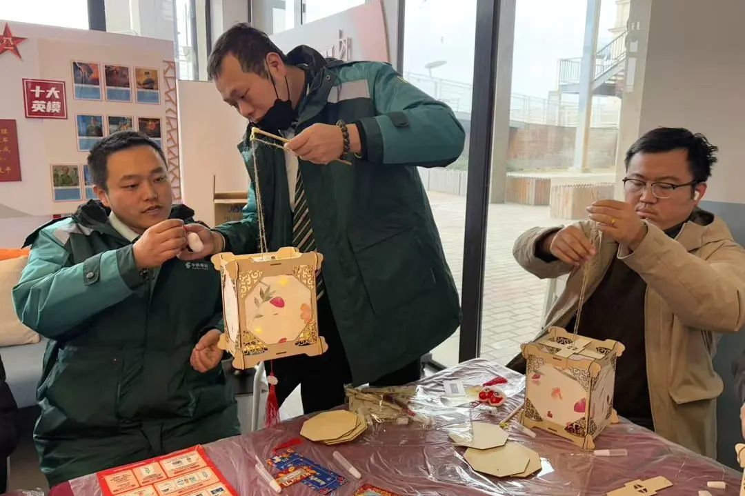 活动伊始,党群服务站的工作人员介绍了元宵节的由来与历史背景,从古代的祭祀习俗到现代的团圆庆祝,让大家对传统节日有了更深入的了解。随后的猜灯谜活动中,灯谜内容既有传统经典的谜语,也有结合现代生活创新设计的谜题,大家或沉思、或讨论,现场气氛热烈而温馨。