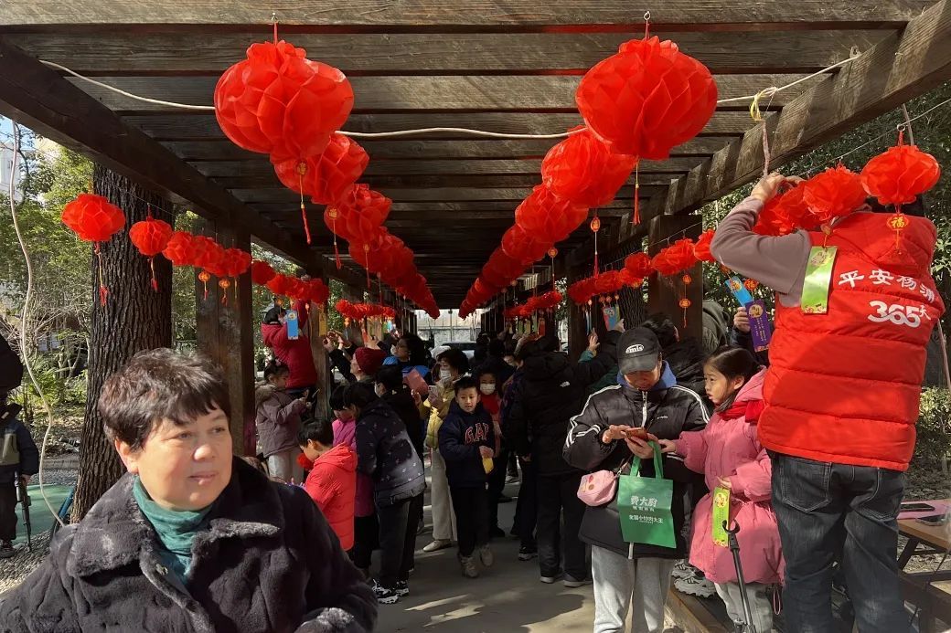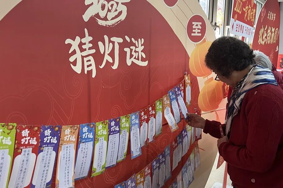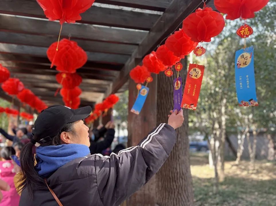 而人气最高的市集活动,莫过于元宵节传统——猜灯谜。一条长长的休闲走廊被装点成了灯谜世界,红灯笼高高挂起,下面坠着一张张印有灯谜的彩纸,吸引着大家前去围观、猜谜。各种灯谜新奇好玩,将节日氛围衬托得愈发热烈。