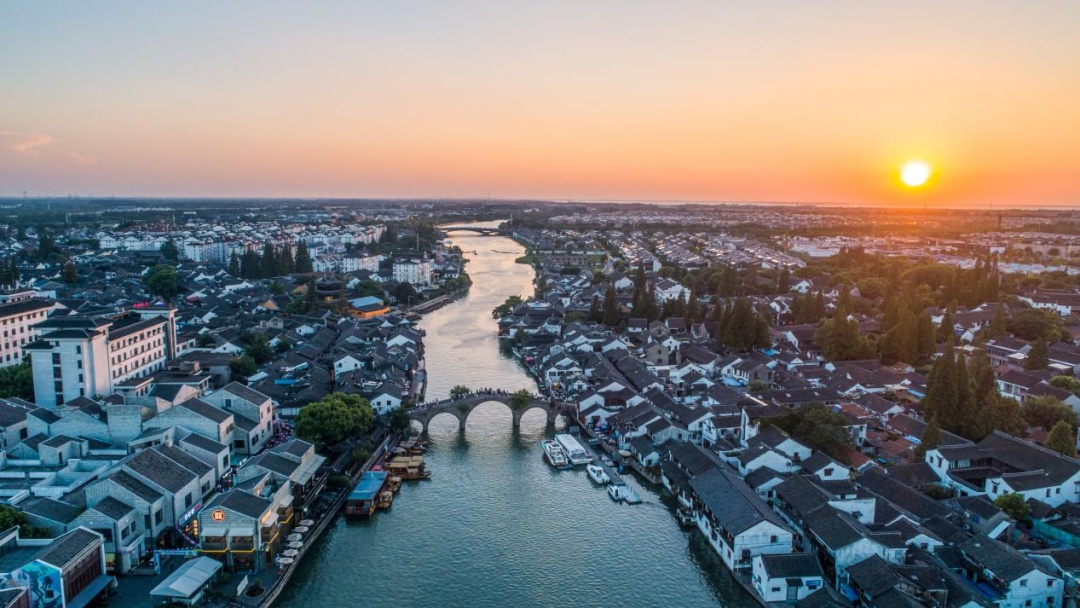 至若金泽古刹,颐浩禅钟,七塔倒悬水晶宫,廿八虹跨银河浪。渔歌欸乃处,霞染网罾;菱唱咿呀时,月移莲舫,真乃“江南桥都”遗韵长存,“水乡泽国”风华独蕴。