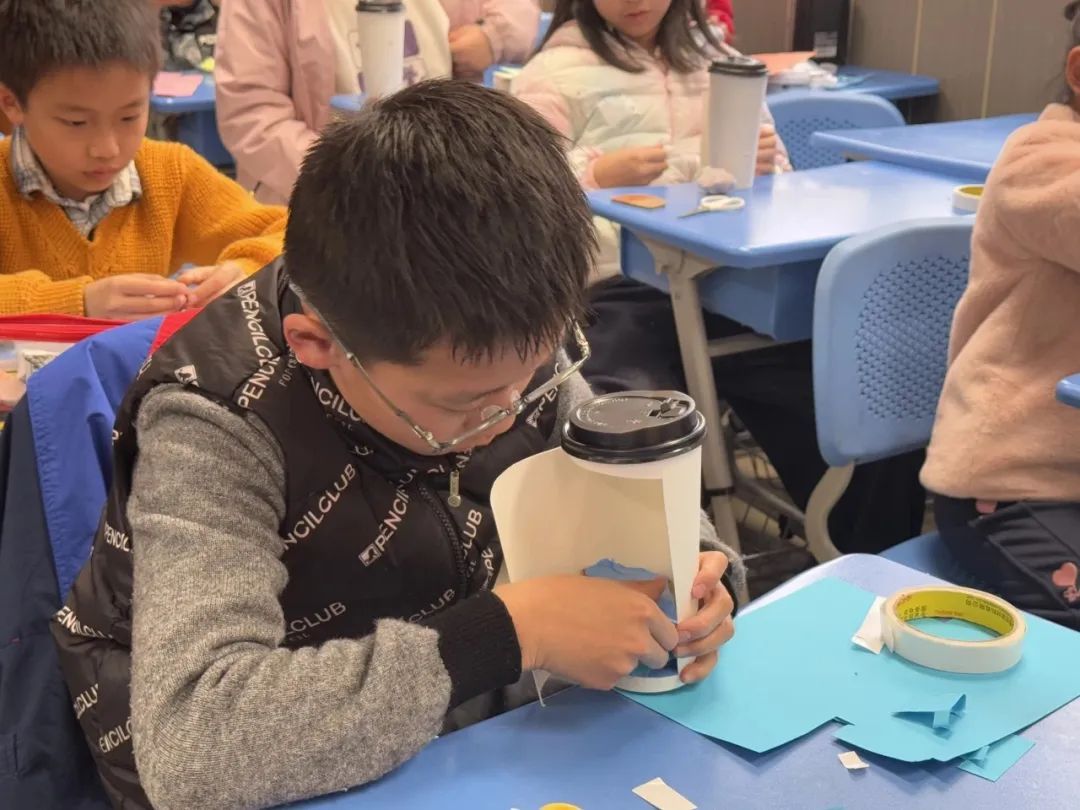 废弃咖啡杯在创意工坊中焕发新生。孩子们化身“环保魔法师”,将废旧材料转化为微型花园、星空灯罩等艺术品。