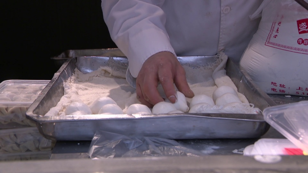 在外卖柜台前,各种汤圆已经摆满了台面,师傅不间断添加补货满足消费者需求。市民沈阿姨告诉记者:“我每年都来这买汤团,味道很灵的,馅芯很鲜美。我住在金江沙路,今天特地乘坐地铁13号线过来,一共买了8盒。”
