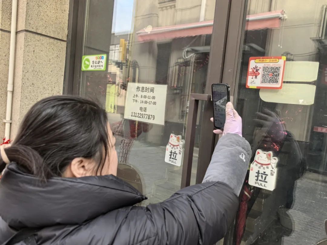 董勤伟表示,为了方便沿街“小个专”商铺使用,不仅在街区党支部书记名片背面印上了“彭浦码”,还将其制成亚克力板,安装在彭浦新村街道每个商铺的门口,真真正正做到了街区数据全覆盖。