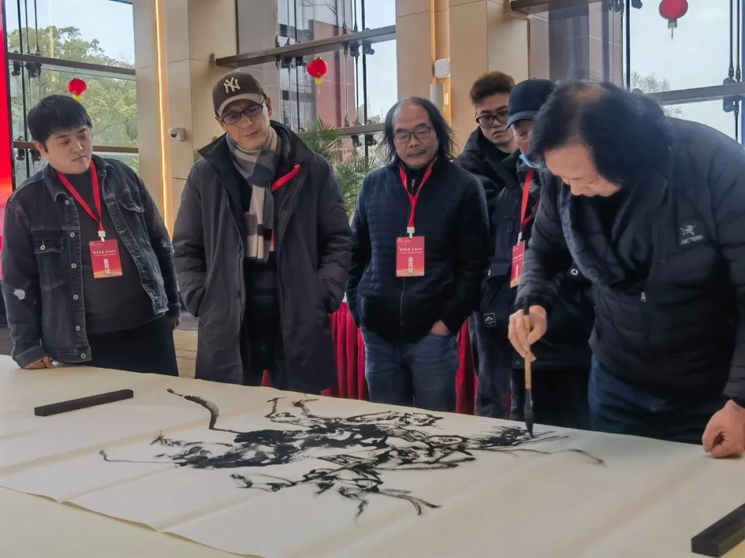 “在刚刚这幅山水画里,我画了松柏和岩石,岩石象征着我们的国家坚如磐石,而松树代表着我们的文人精神。”汪家芳说,“在春节即将结束时举办这样的活动很有意义,预示着我们的文化会更加繁荣,希望借着这样的活动,让更多的人了解我们的海派文化,传承好我们优秀的中华文化。”上海市文史研究馆馆员李俊也对笔会作品作了精彩点评,他认为从现场即兴创作的作品来看,整体水平比较高,体现出了五个区乃至上海的书画水平。