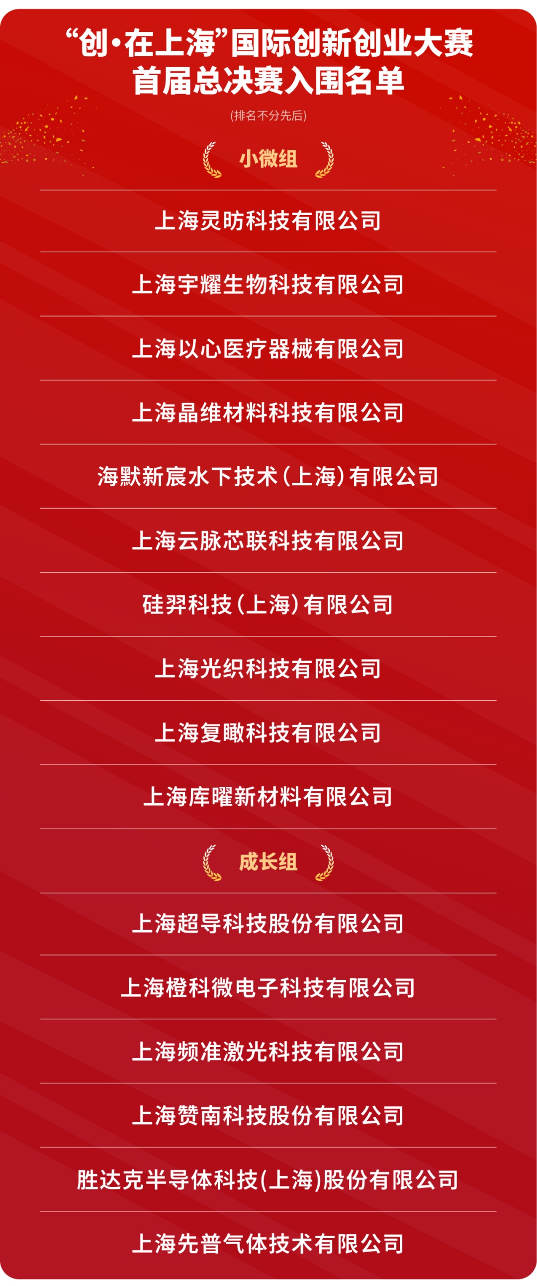 近日,2024“创·在上海”国际创新创业大赛首届总决赛入围企业名单公布。赛事聚焦“3+6”“4+5” 产业,为上海优质科创企业和项目提供了展示的舞台,加速了创新技术的落地应用。经过评比,最终小微组10家企业和成长组6家企业入围大赛总决赛。