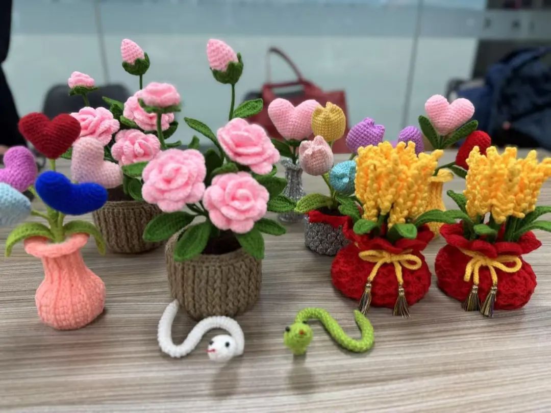 “女红坊”成员们制作的新年主题钩针作品。