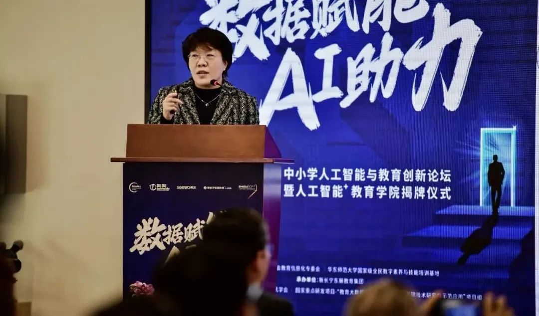 1月11日,“数据赋能 AI助力”2025中小学人工智能与教育创新论坛暨人工智能⁺教育学院揭牌仪式举行,华东师范大学教师发展学院院长、上海市教育学会信息化专委会主任闫寒冰作“数智赋能育人模式变革”专家报告。