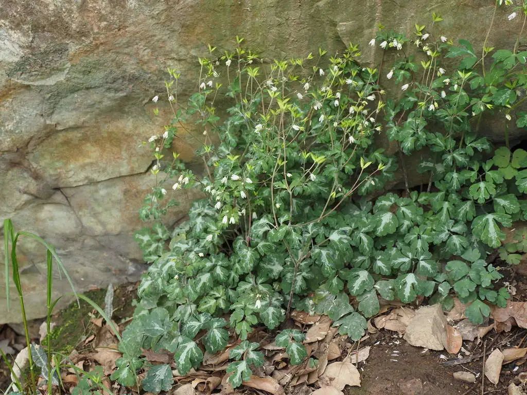 天葵的叶片为掌状三出复叶,有点像三叶草,不过与园林中常见的一种植物——耧斗菜更像。事实上,天葵所在的天葵属与耧斗菜所在的耧斗菜属关系较近,从耧斗菜花朵上能看出些许天葵花的影子。天葵奇特的叶片也确实让一些植物爱好者动了心,常常被用来作为观叶小盆栽观赏,有些天葵的叶片上还会出现白色的条纹,具有更加显著的观叶价值。