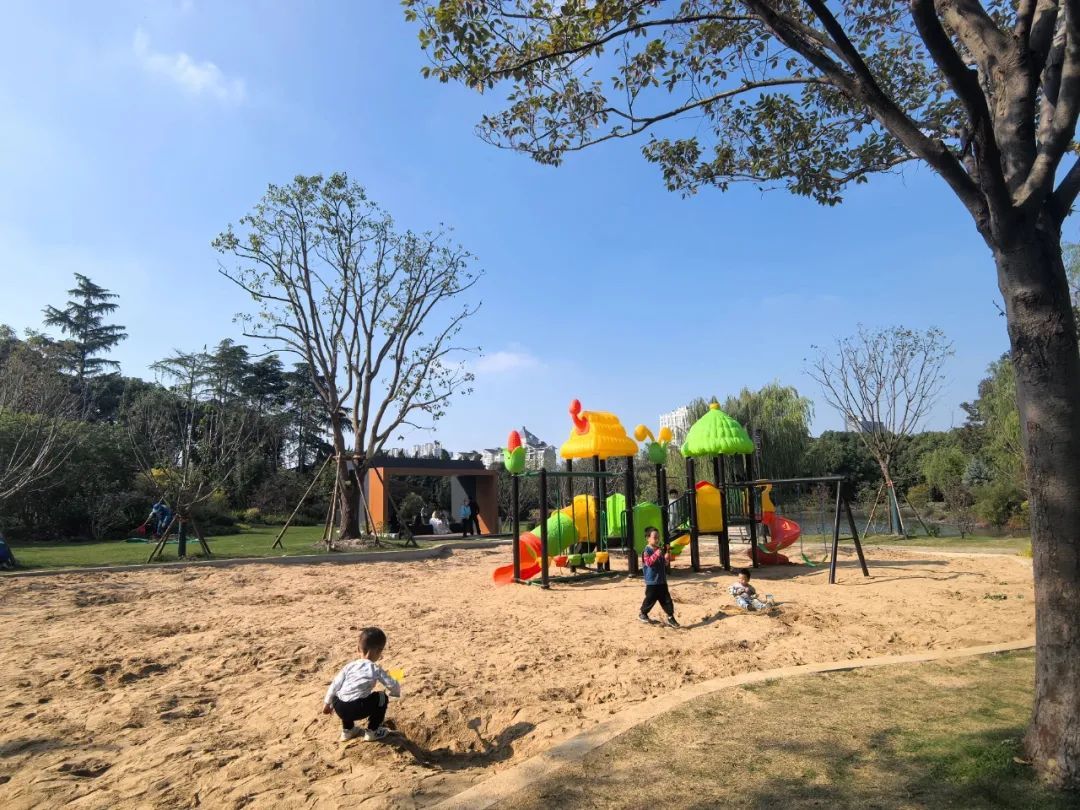 为了更好地贯彻和落实儿童友好理念,公园增设了一片专门为儿童设计的游乐区域,旨在为孩子们提供一个安全、有趣且充满活力的玩耍空间。此外,公园在周围贴心地为家长设置了坐凳,方便家长看护孩子。