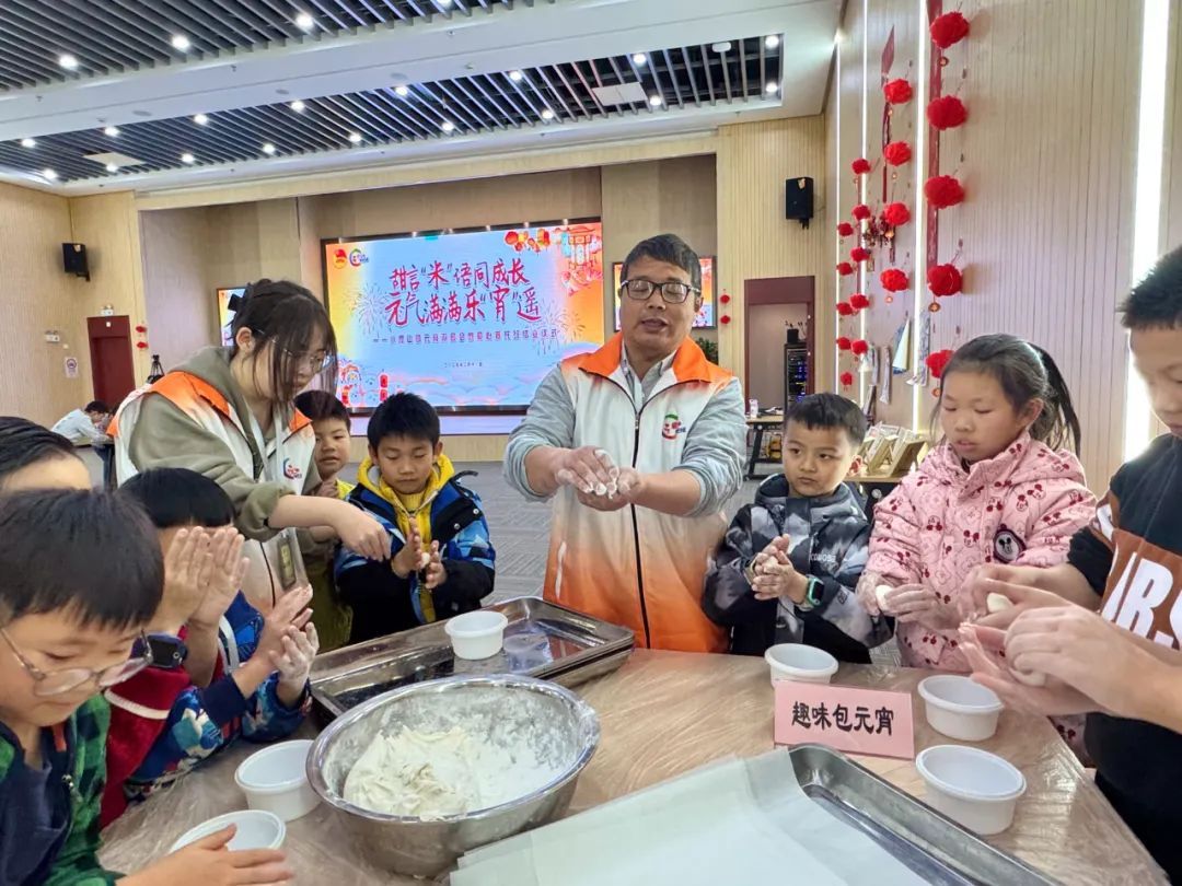 下午1点半,一场丰富的元宵游园会正在小昆山镇办班点开展。50余名孩子体验趣味猜灯谜、手工纸灯笼、喜乐捞元宵、千里眼投壶等传统民俗游戏,并在家庭农场主的带领下,一起揉面、揪团、填馅,学做汤团。