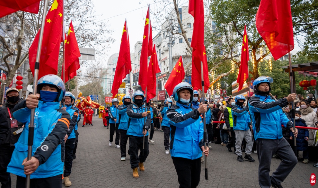 今天下午3点30分,随着锣鼓齐鸣,第一场行街表演如期而至。200余名表演者身着鲜艳的彩衣,组成方阵,上演行走的艺术。舞龙、舞狮、打腰鼓......现场气氛喜庆又热烈。