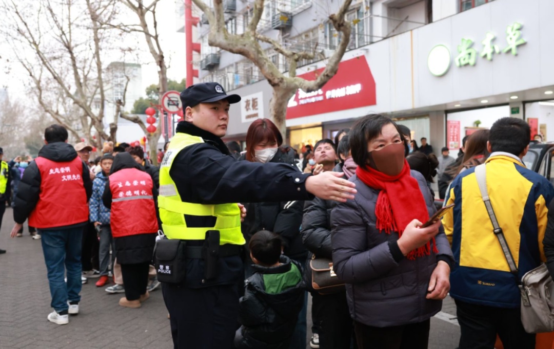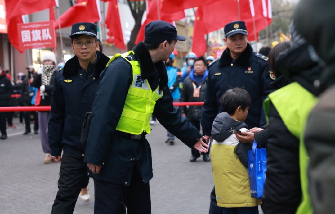 人潮涌动间,抹抹“藏蓝”也如约而至,为这幅色彩斑斓的节日画卷增添了平安“警色”。为确保元宵活动期间治安、交通秩序井然,崇明警方提前部署并制定详细的安保方案,部署150余名警力,根据活动区域分片、分段,定人、定岗、定责开展人流疏导工作,同时安排步巡、车巡,定点确保市民安全游玩。