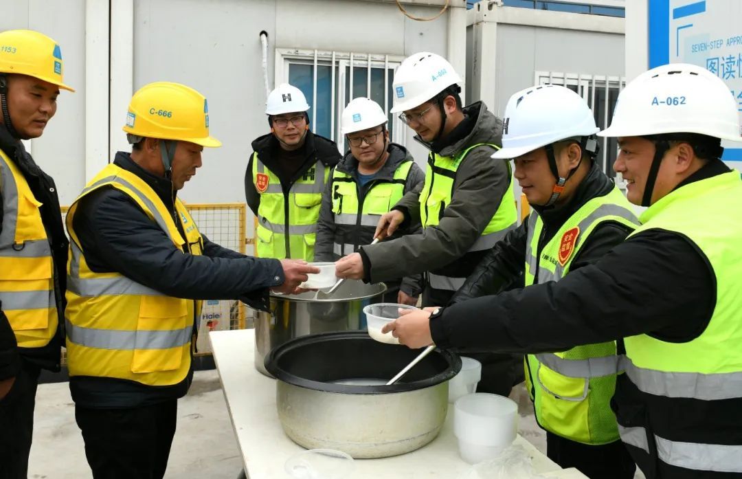 正月十五吃汤圆是元宵特色活动,也是中国独有的传统民俗仪式。项目安全部还为工友们送上劳保手套和“安全大礼包”,包括节后复工复产入场教育课程、安全知识等,让安全文化时刻伴随大家。