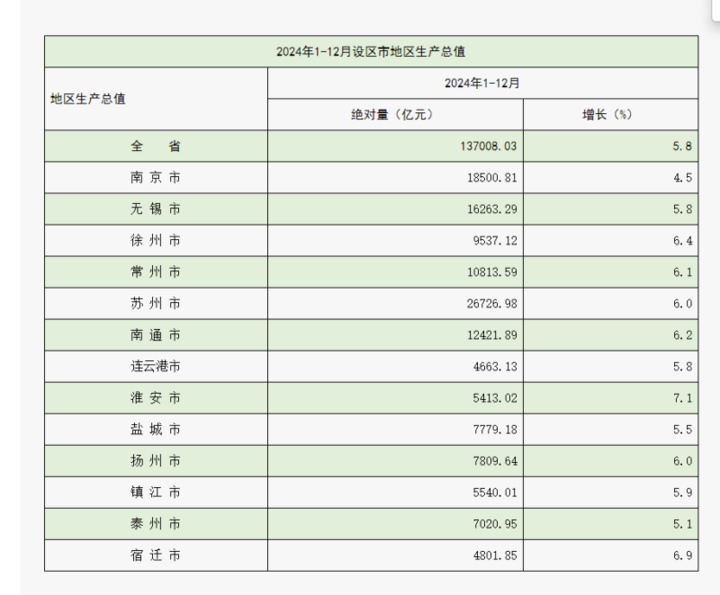 日前,江苏省统计局公布了2024年江苏13个设区市地区生产总值(GDP)数据。