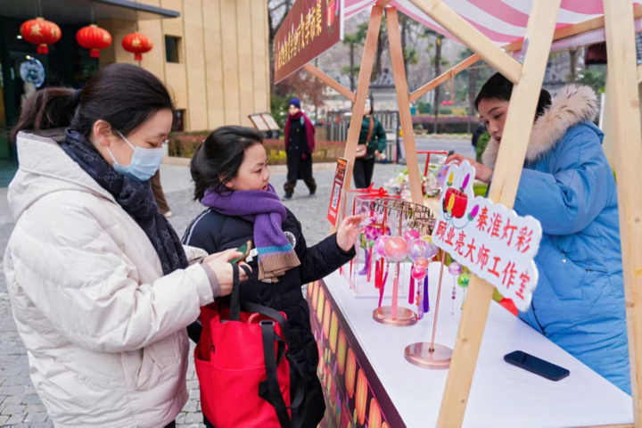 据朝天宫街道负责人介绍,南京朝天宫片区与灯文化渊源深厚。紧邻新街口商圈的明瓦廊,曾是金陵特产羊角灯工坊的集聚之地;而笪桥、评事街一带,在明清时期则是南京灯会的核心区域。当时,那五光十色、热闹非凡的景象,还被甘熙记录在了《白下琐言》之中。2020年,朝天宫街道在熙南里成功恢复了笪桥灯市,“今年的元宵节,我们以文学为纽带,让朝天宫与文学客厅相遇,邀请市民在人间烟火与文化雅韵的交融中,探寻‘春’的美好与希望”。