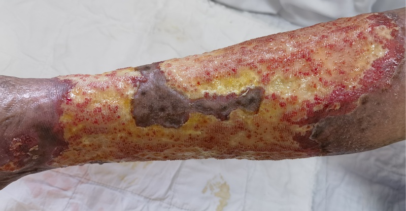 皮肤护理治疗后的右小腿溃疡面(前)