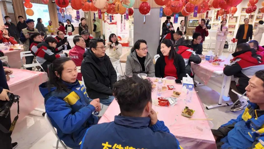 中心准备了丰盛美味的菜肴和热气腾腾的汤圆,为辛劳的奔波者送上温暖。江宁路街道相关负责人及静安区人大代表,和小哥们围坐在一起共进午餐,大家一边品尝着美食,一边畅所欲言。代表们倾听小哥们的生活情况和实际需求,了解他们的所思所想,收集他们的意见建议,现场气氛其乐融融,充满了家的温馨与关怀。