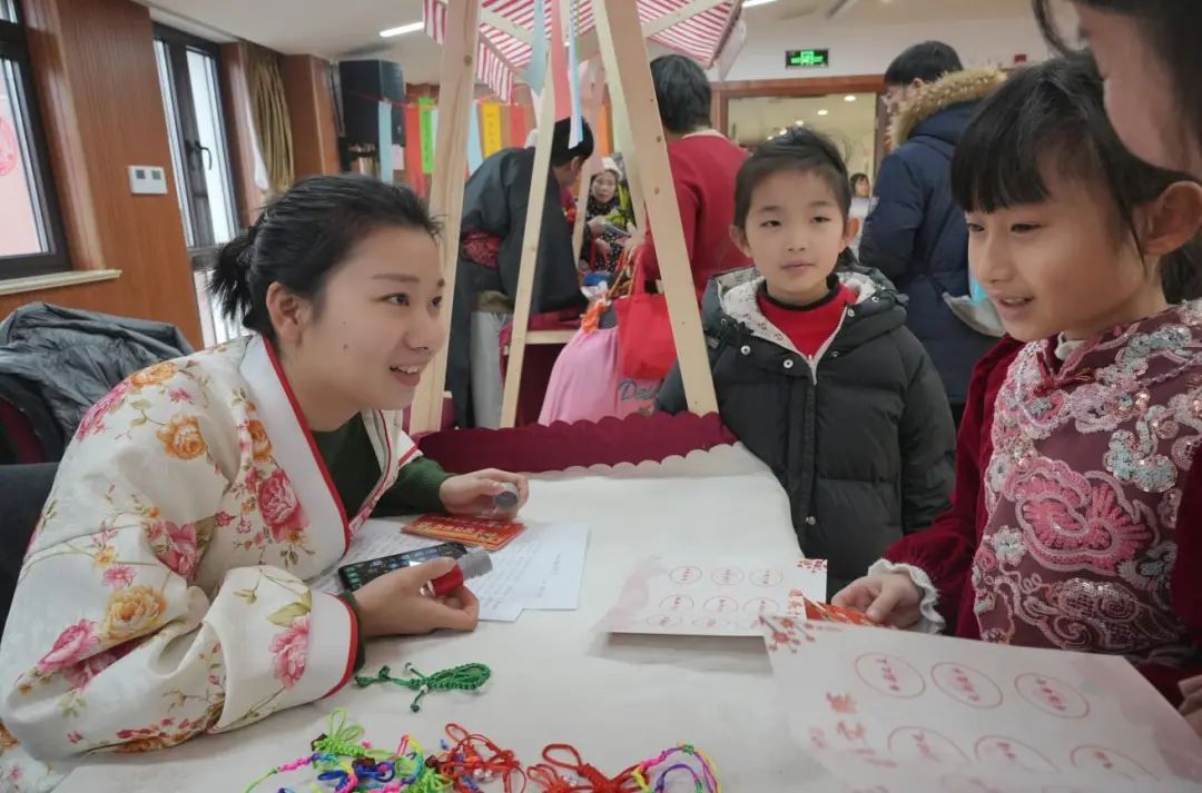 集章兑换礼品的环节为整个活动增添了趣味性和互动性。参与者们可在通关文牒中加盖印章,集满印章后换得书香兑换券,可以兑换非遗手工艺品、特色小吃等精美礼品。活动现场还有不少居民朋友身着汉服等传统服饰,“书香曹家渡”的文化氛围愈加浓郁。