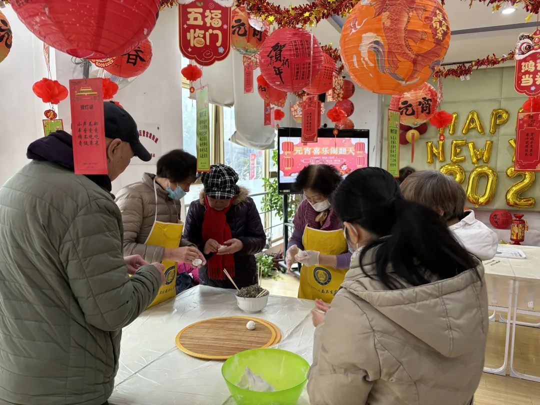 曹家渡街道各居民区也是热闹非凡,元宵节的氛围感十足。过元宵吃汤圆是必不可少的元宵节保留节目,在玉兰村、中行别业、高荣等居民区,大家围坐在一起,手工自制汤圆,从揉面、拌馅到搓团,忙得不亦乐乎。
