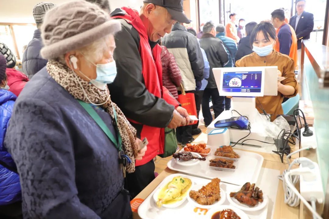 当天上午10点,伴随着热闹的歌舞,程家桥社区长者食堂正式开业。不到10点半,食堂门前就排起了长队。“等了好久,终于开业了!”“这下吃饭方便多了!”居民们高兴地说。