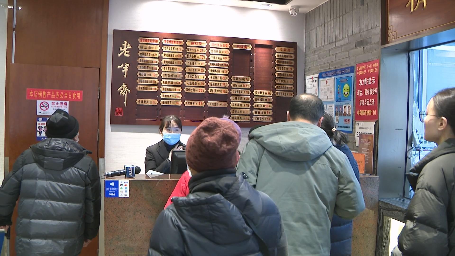 中午11点半,收银台前点单的市民已经排起了长龙,其中,有不少市民就是闻风冲着刀鱼汁面而来。“一份刀鱼汁面,2两,加一份肴肉,一共是56元。”