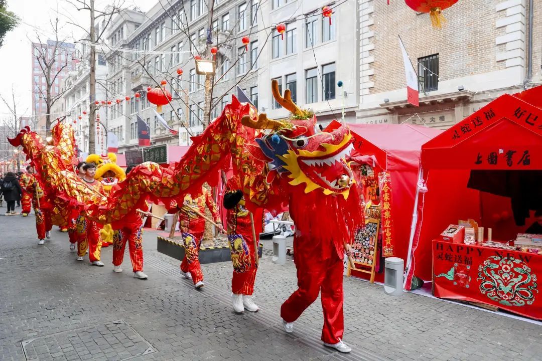元宵节当天,外滩源新年集市举行了元宵庆典活动。作为春节系列活动的压轴大戏,集市以送兔子灯、舞龙舞狮表演、汉服巡游和舞蹈表演等丰富多彩的活动,为市民和游客带来了一场充满传统文化韵味的节日盛宴。