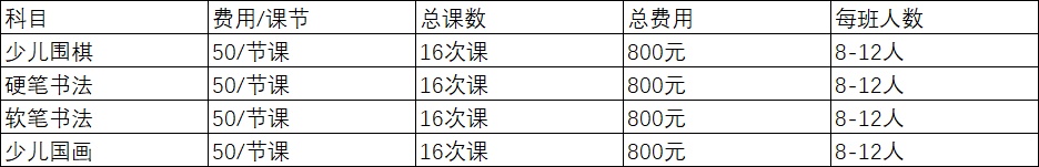 少儿围棋、硬笔书法、少儿国画