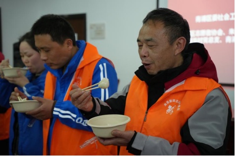 元宵节前夕,在朱家角镇新华村村委会,一碗碗热气腾腾的汤圆被志愿者小朋友们递到快递小哥的手中。这些汤圆由小朋友们在老师的指导下精心制作而成,饱含着他们对在春季期间依然坚守岗位的小哥们的祝福。“刚才我亲手包了汤圆送给快递员叔叔,希望他们能度过一个美好的节日,也希望通过这次的公益活动,给自己带来一个不一样的元宵节。”孙艺菲小朋友对记者说道。