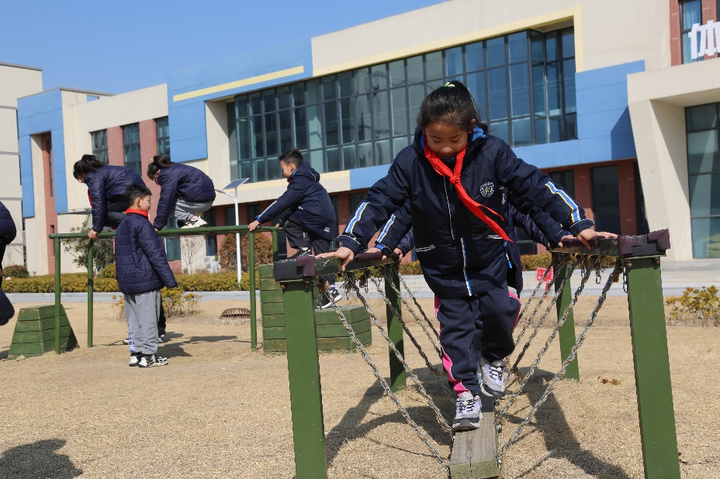 徐州市经十路小学学生课间使用体育器材锻炼 “现在学生能更从容地利用课间时段,开展各类喜欢的体育锻炼或做游戏。”徐州市解放路小学校长郑晓薇告诉记者,学校确保学生每日享有2小时综合运动、1节体育课及课间15分钟休息基础上,正推动“深化课后服务3.0”,将课后服务内容和课间活动有机结合,引领成长新风尚。