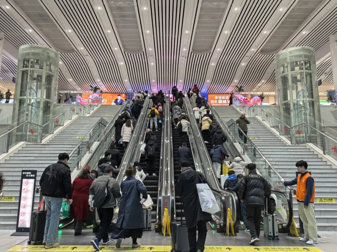 虹桥枢纽通过完善交通运力和服务设施,为春运高峰的旅客提供更便捷、舒适的出行环境,全力保障旅客平安、有序返乡和返程。