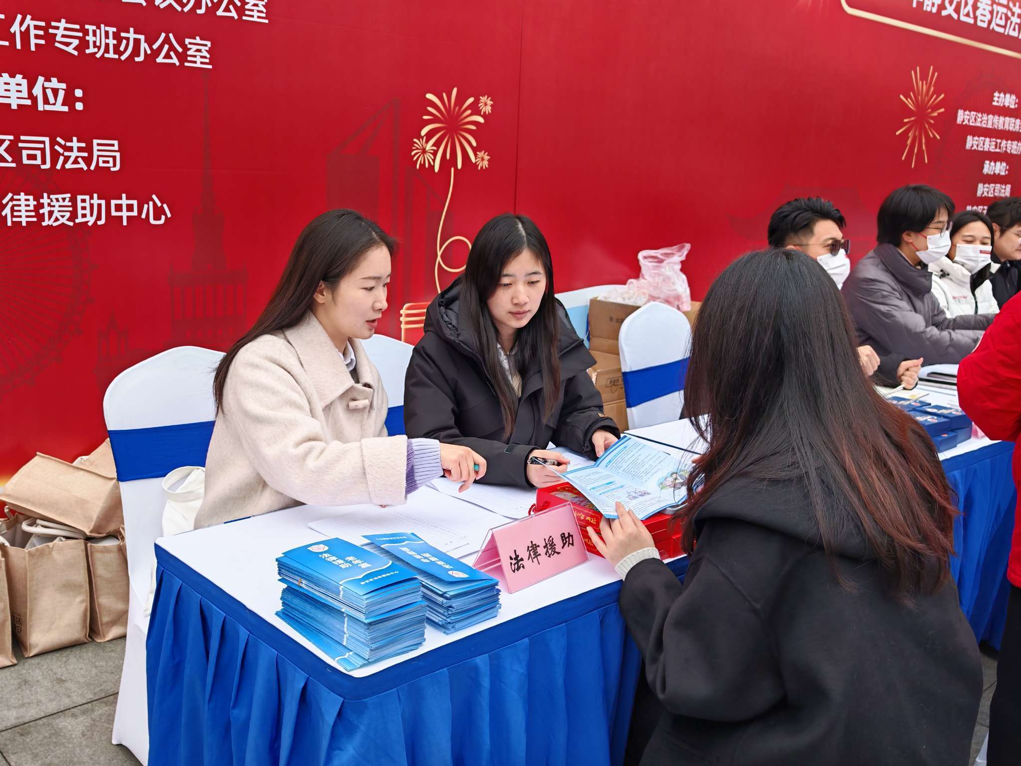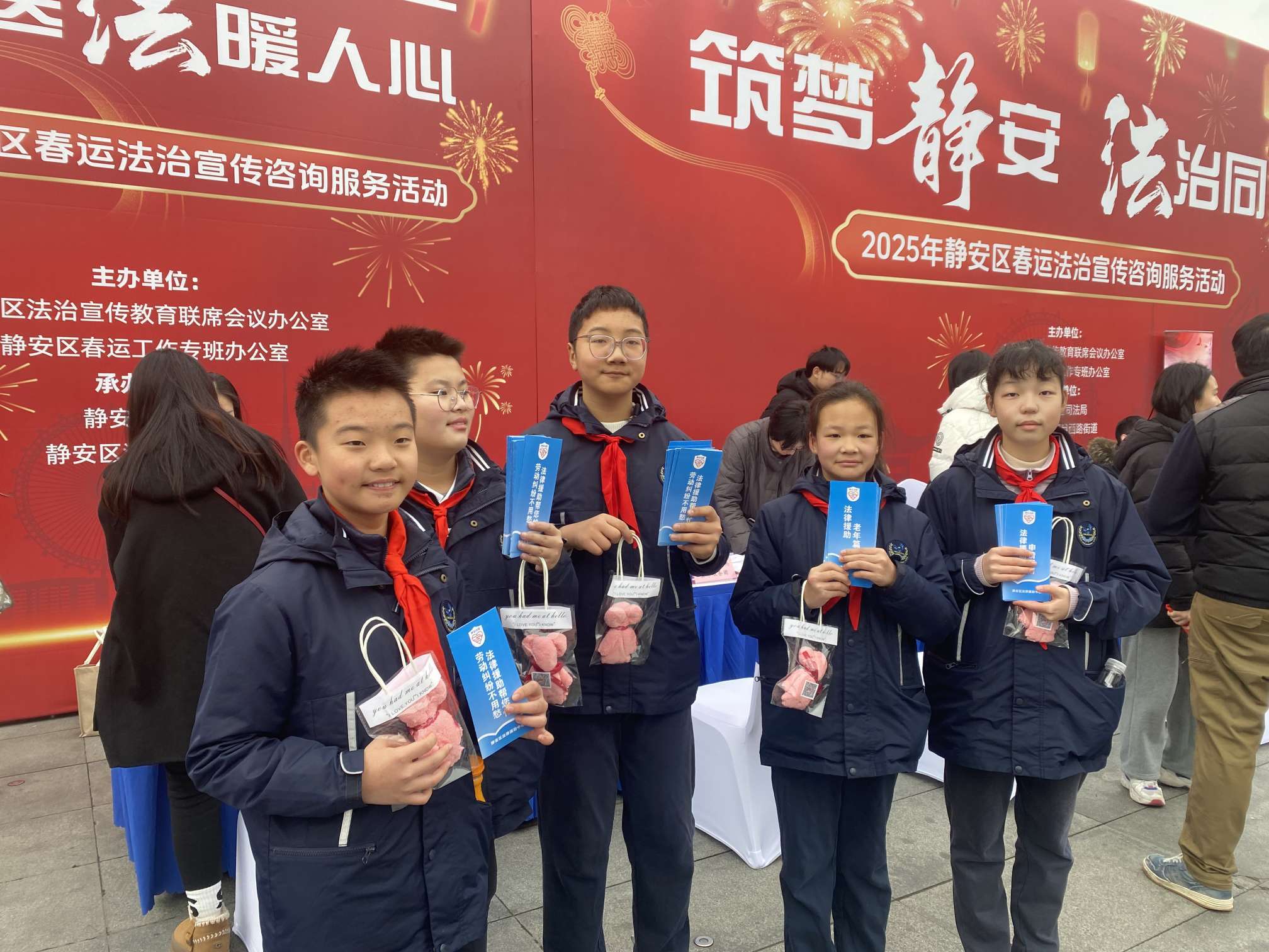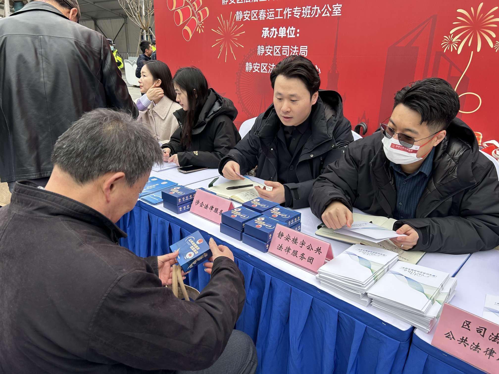 2月12日,静安区在上海站南广场世博钟楼下举行2025年春运法治宣传咨询服务大型现场活动。