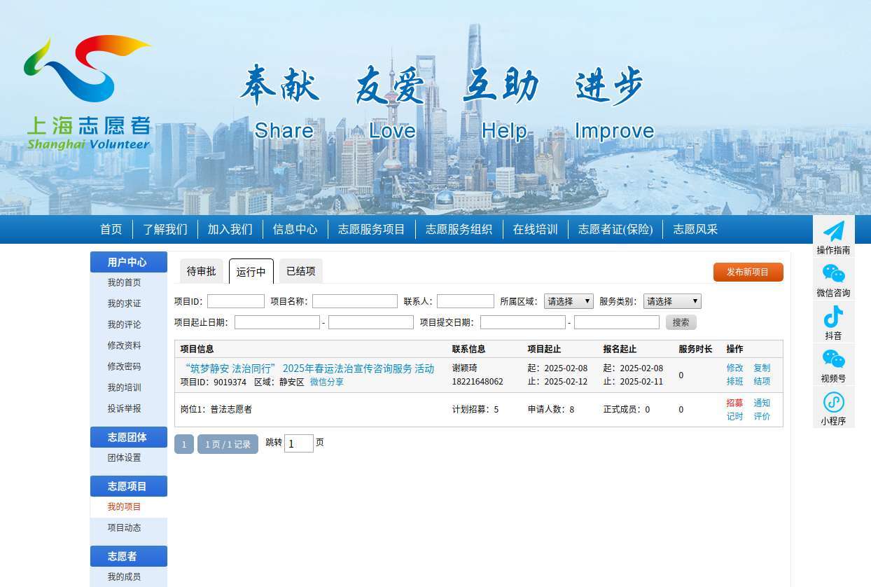 据介绍,此次活动开展前夕,在上海志愿者网上发布志愿项目,向社会各界公开招募普法志愿者。