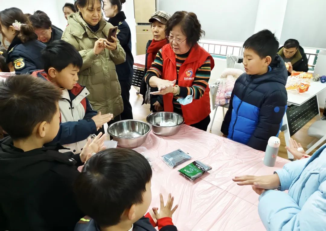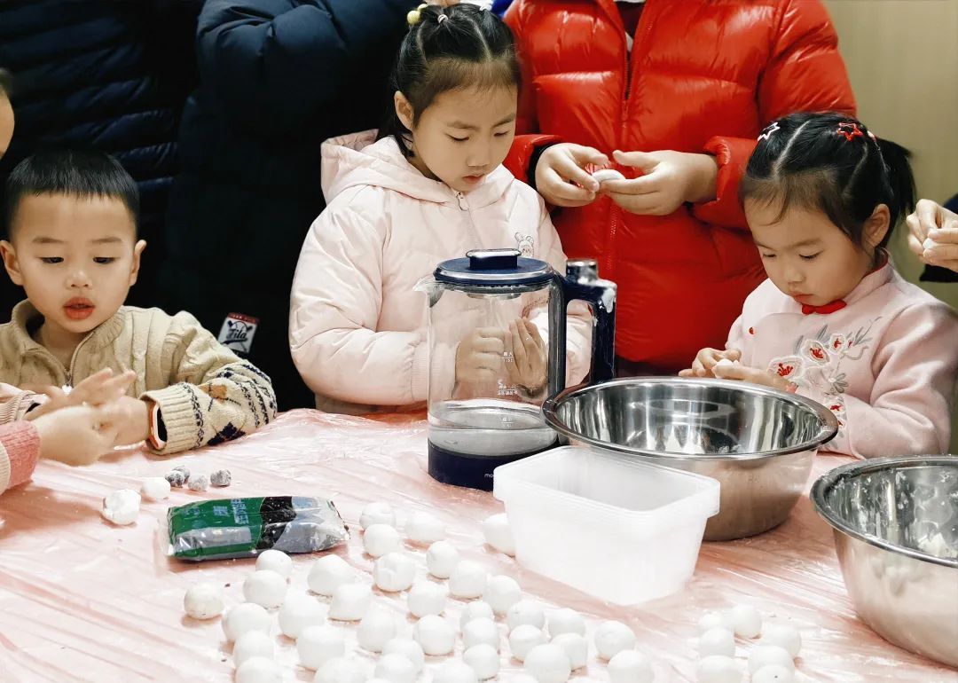 除了制作花灯,包汤圆也是必不可少的重头戏。社区居委提前准备好了糯米粉、豆沙馅等材料,家长和孩子们围坐在一起,揉面团、包馅料、搓汤圆,其乐融融。老人们手把手地教小朋友包汤圆的技巧,讲述元宵节的传统文化和习俗,让年轻一代在动手实践中感受传统文化的氛围。