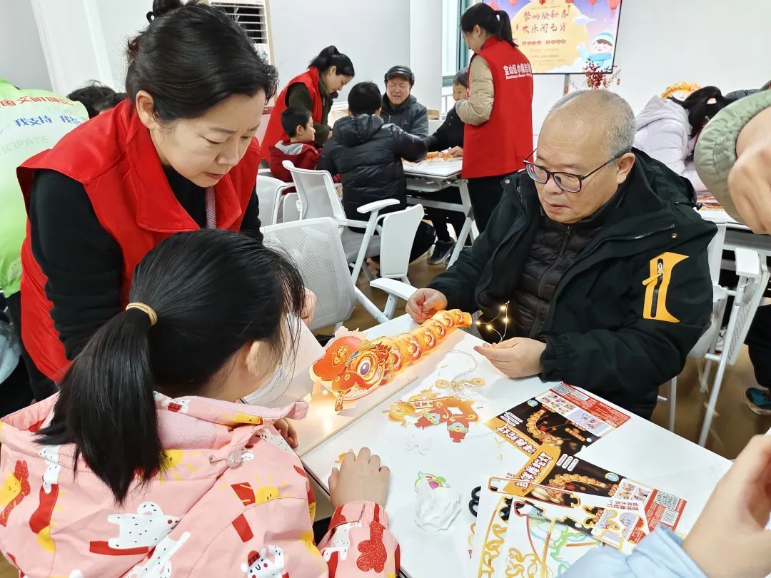 活动现场,老人和孩子们一齐动手,在社区志愿者的指导下,学习制作传统花灯。剪裁、粘贴、组装……大家忙得不亦乐乎,欢声笑语不断。不一会儿,一盏盏充满童趣的卡通蛇造型的花灯便呈现在眼前。孩子们兴奋地展示着自己的作品,脸上洋溢着开心的笑容。