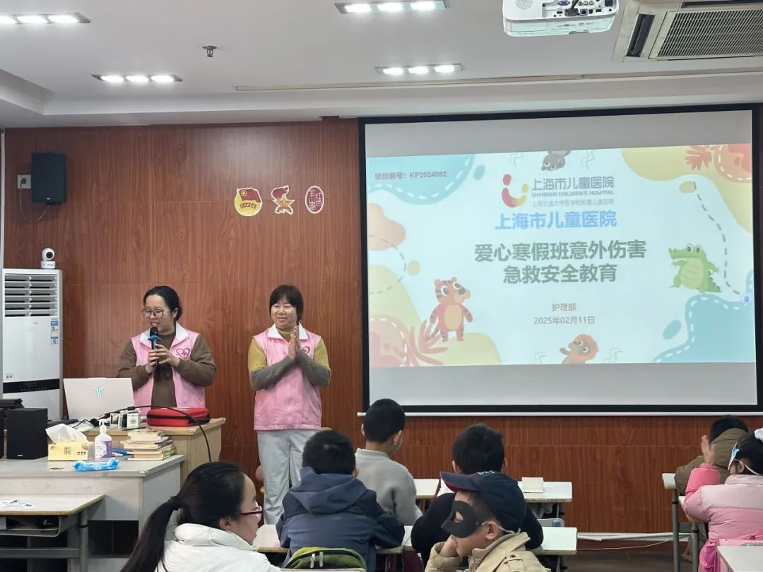 上海市儿童医院团员青年志愿者也积极响应团市委、卫健委团委号召,共有17位志愿者,积极参与了普陀区、静安区13个爱心寒托班健康科普课程中。医务青年志愿者们,充分发挥儿童专科的专业特长,围绕儿童假期可能面对的意外伤害、儿童营养膳食搭配、儿童运动伤害、儿童心理健康等方面进行课程设计,倡导儿童在假期养成科学、文明的健康生活方式,受到了小朋友们的热情欢迎和广泛好评!