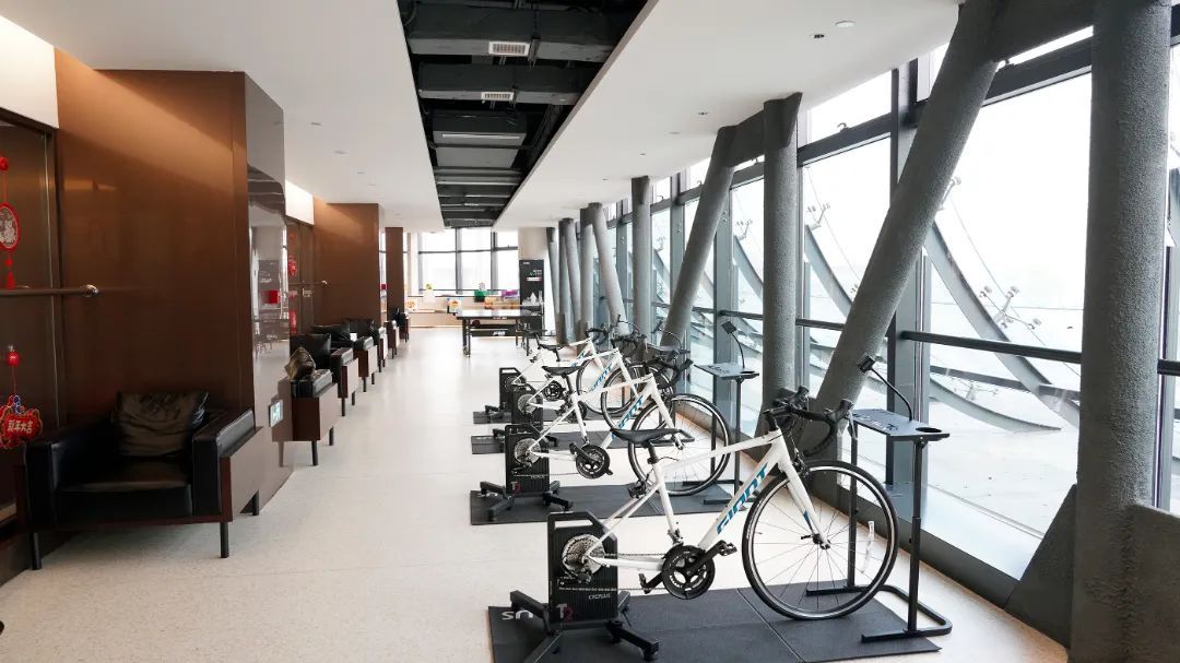 走进虹泾社区中心·党群服务中心,可以看到宽敞明亮的议事大厅,270度超大电子屏流动展示着园区活动和企业风采;活动室+会议室+茶歇室+休息区+户外露台的成套配置,加上大空间和随意搭配的灵活性,全方位满足园区企业需求。书记工作室可以咨询党组织关系转移、对接上级党组织等事项;休闲运动区放置了骑行台和乒乓球桌,让员工在工作之余来放松小憩一下。