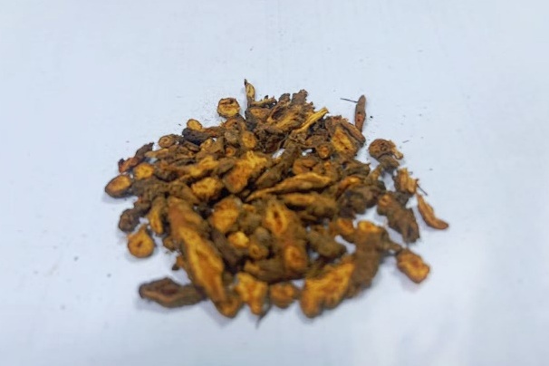 为毛茛科植物黄连、三角叶黄连或云连三种植物的干燥根茎。味苦,性寒。归心、脾、胃、肝、胆、大肠经。具有清热燥湿,泻火解毒的功效。用于湿热痞满,呕吐吞酸,泻痢,黄疸,高热神昏,心火亢盛,心烦不寐,目赤,牙痛,痈肿疗疮等。