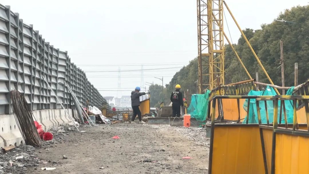 2月12日上午,记者来到位于枫泾镇的兴新公路(亭枫公路-南枫公路)新改建工程项目施工现场,看到工作人员已陆续复工,投入紧张的面杖港桥梁桩基施工以及北段灰土路基作业。