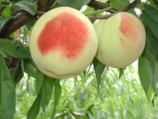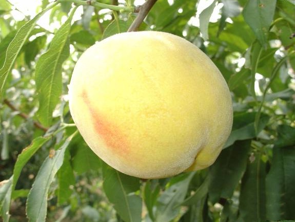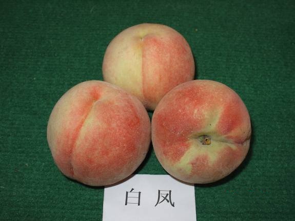 果实长圆形,平均果重200g,最大果重300g;果皮底色乳白色,果面着红色;硬溶质,风味甜,香气浓,奶香味,黏核。品质优良,丰产性、完熟后汁多,揉一揉可以插吸管吸食,上海地区7月中旬成熟。