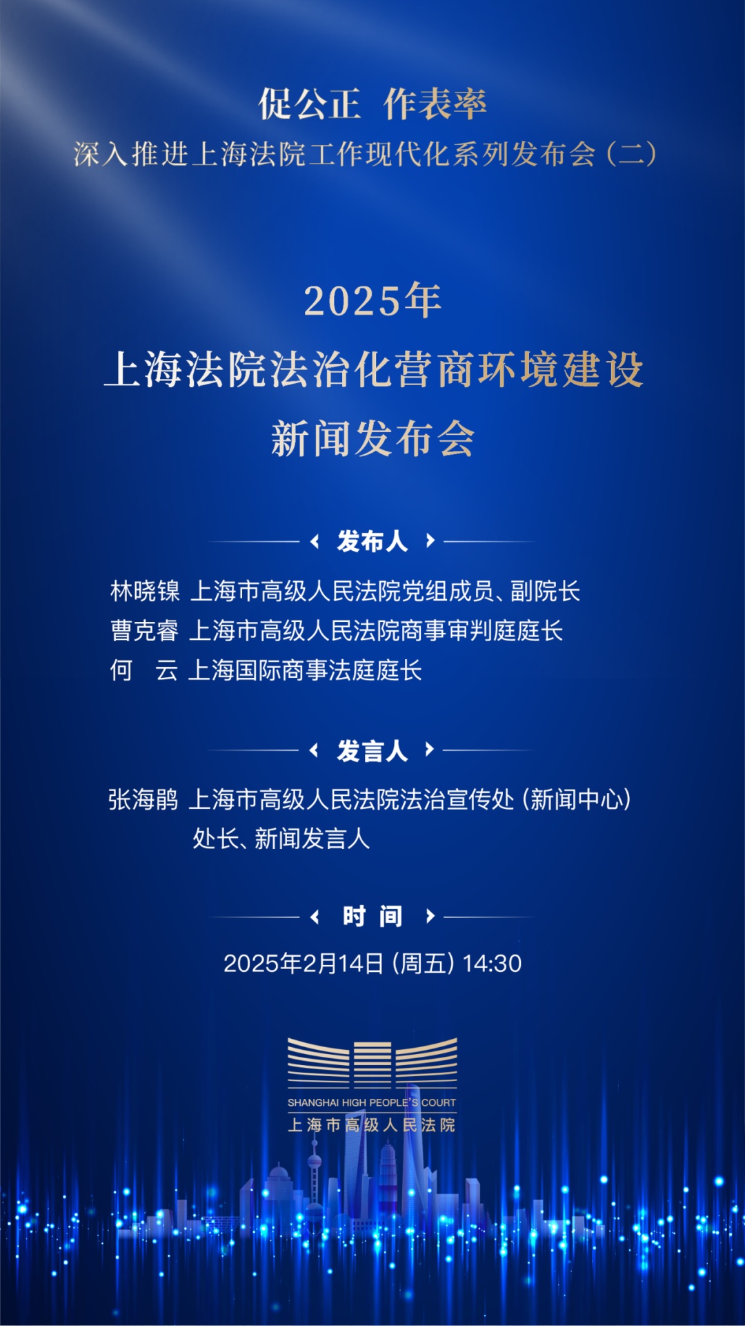 本场发布会是“促公正 作表率——深入推进上海法院工作现代化”系列发布会第2场。相关内容于“上海高院”全媒体平台全程直播。