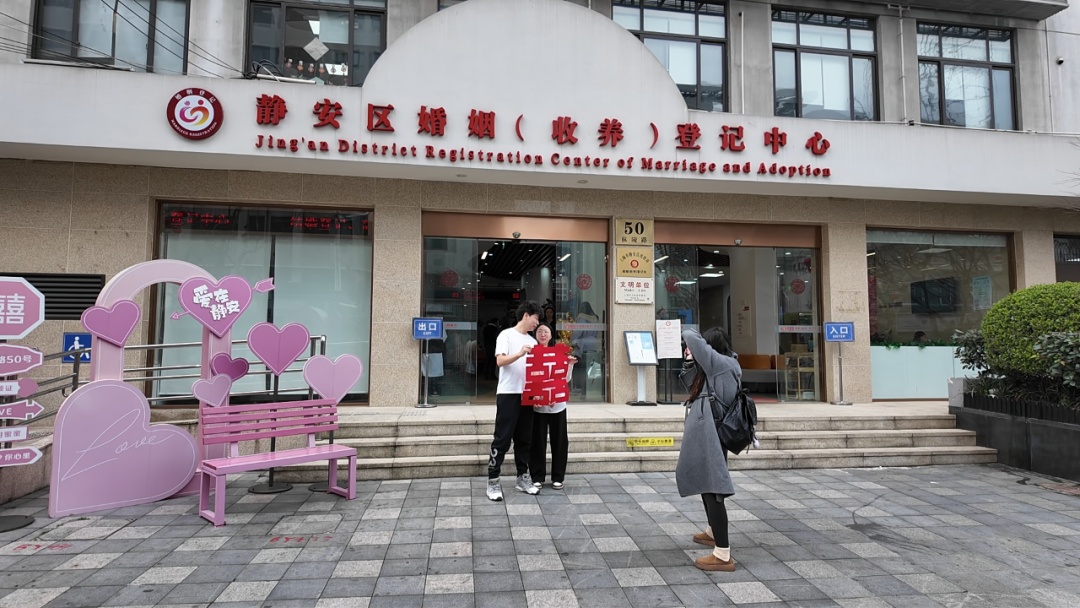 今天,静安区婚姻登记中心洋溢着甜蜜与幸福,不少新人们选择在今天办理结婚登记,与心爱之人共结连理。为了满足新人们登记结婚的需求,中心工作人员也提前做好了充分准备,增加了服务窗口,优化了登记流程,确保登记工作有序、高效进行。