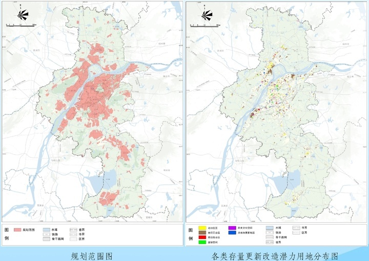 此次规划范围为南京市城镇开发边界内的区域,总面积约为1492.53平方千米,重点将城镇开发边界内各类存量建设用地中与空间战略不匹配物质空间品质差、功能使用效率低的用地作为更新对象。