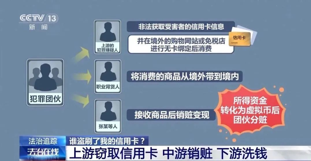 ·上游的犯罪嫌疑人非法获取受害者的信用卡信息,并在境外的购物网站或免税店进行无卡绑定后消费;