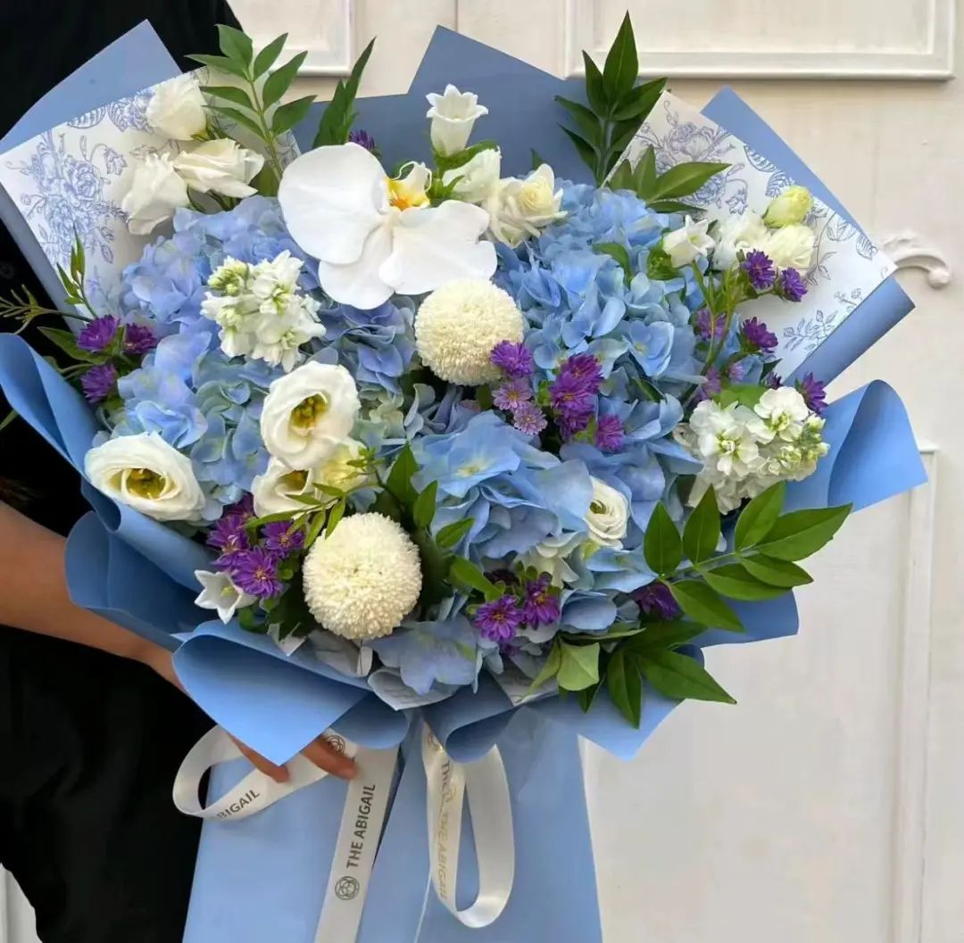 “女朋友很喜欢中国风和非遗文化,这次就送她新中式的花束了。”在五里桥区域上班的张先生从外卖平台上的“艾比嘉尔花店”下单了绣球蝴蝶兰风铃新中式混搭花束,送给女朋友。“现在这种带国风元素的鲜花非常漂亮,文化加持更具魅力。”