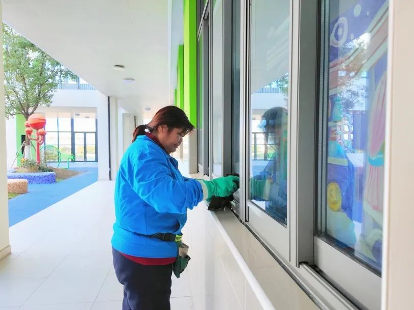 满“新”欢喜,“净”待归来。学校是孩子们的第二个家。新学期的钟声即将敲响,南桥镇南中路幼儿园、育秀幼儿园、育秀小学、实验中学、育秀中学、奉贤中学附属小学等学校的老师、保育员们齐动手,对教室内、走廊、活动区、卫生间、户外活动器械、食堂等各个角落进行全面细致地清洁消毒,严格做到无死角遗漏,清洁工作执行到位,确保孩子们返校后,能在安全、卫生的环境中学习和生活。